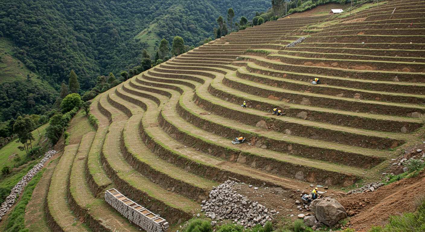 Рельеф и крутизна склона напрямую влияют на объем земляных работ и сложность конструкции террас. Чем круче уклон, тем выше риск эрозии и смещения грунта, что требует установки подпорных стен и дополнительных укреплений. Для пологих склонов достаточно небольших террас и простого дренажа, что значительно снижает стоимость. При сложном рельефе могут понадобиться многоуровневые террасы, армированные подпорные стены, каменные насыпи или габионы, что существенно увеличивает цену проекта.