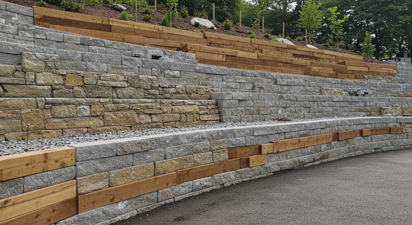 Использование нескольких материалов в одной подпорной стене обеспечивает сочетание лучших свойств каждого элемента. Камень придает устойчивость и долговечность, бетон обеспечивает прочность, а дерево добавляет эстетики и природного тепла. Металлические элементы усиливают конструкцию, позволяя создавать более высокие и сложные формы. Комбинированные подпорные стены идеально подходят для террасирования склонов, создания каскадных террас и укрепления участков с проблемным грунтом. Кроме того, комбинации материалов открывают широкие возможности для дизайнерских решений, включая цветовые контрасты и текстурные сочетания.