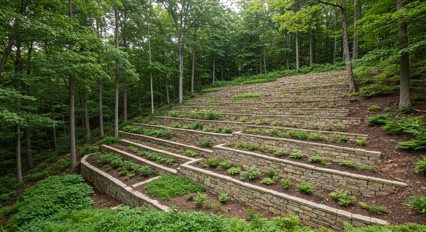 Для террасирования лесных массивов применяются различные технологии в зависимости от рельефа и задач участка. Чаще всего используют многоуровневые террасы с подпорными стенами из камня, бетона или комбинированных материалов, которые обеспечивают устойчивость склонов. Важным моментом является сохранение существующей растительности и минимизация повреждений корневой системы. Для защиты почвы используют геотекстиль, мульчирование и посадку грунтозакрепляющих растений, что снижает эрозию и улучшает удержание влаги.