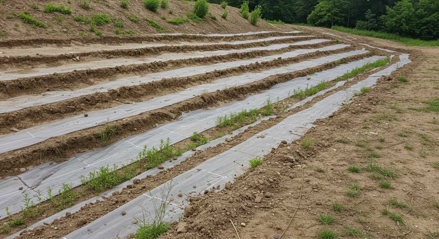 Выбор геотекстиля зависит от типа грунта, уклона склона и целей террасирования. Для склонов с крутым уклоном лучше использовать прочные и плотные варианты, а для декоративных зон подойдут легкие и фильтрующие типы.