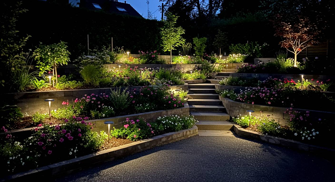 - Сколько стоит установка освещения на террасированном участке? Цена зависит от количества светильников, сложности монтажа и выбранных материалов, но правильная планировка снижает расходы.