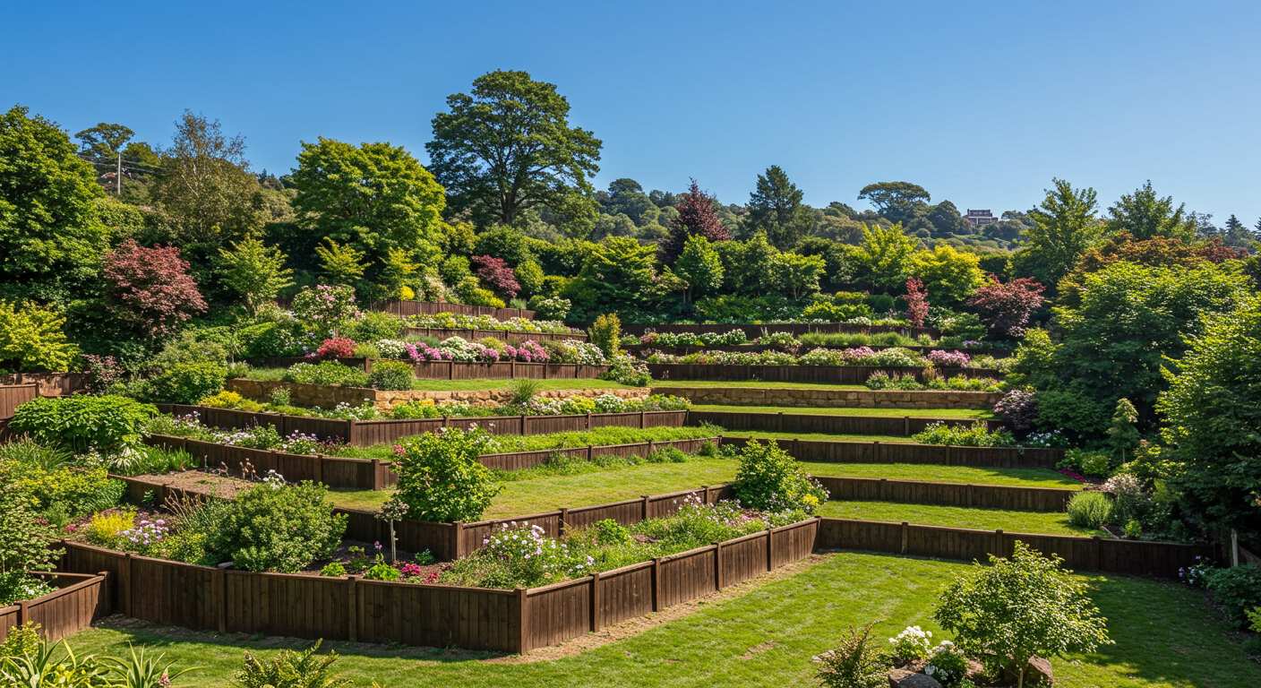 На границах террас или между функциональными зонами для разграничения пространства и защиты растений. - Какие материалы подходят для террасированных участков?