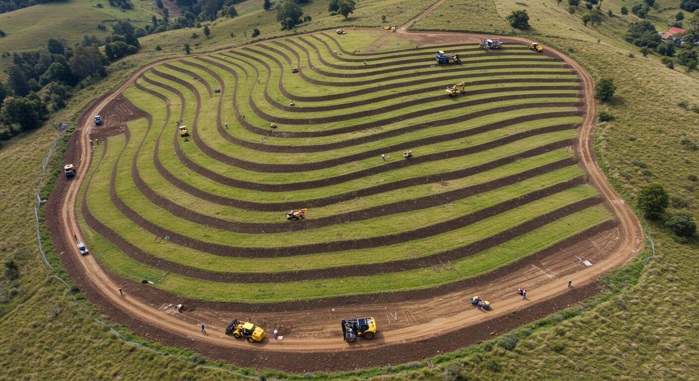 Процесс террасирования начинается с анализа рельефа участка и проектирования уровней. Необходимо учитывать угол наклона, тип грунта и расположение будущих теплиц. Далее выполняется разметка и выемка грунта для формирования ступеней террас. На каждом уровне устраивают дренажные канавы или системы отвода воды, чтобы предотвратить застой влаги. После подготовки основания монтируются подпорные стены и настилается грунт с улучшенной структурой для посадки растений.